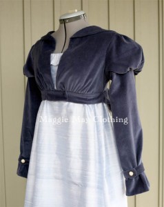 But as today is Regency Friday, I found myself thinking of the Regency “jacket” I adore from the fabulous Colin Firth version of Pride and Prejudice, the spencer. Now I know that the spencer is a staple of Regency dress and can be found in every production, but the ones Lizzie wore in my favorite Pride and Prejudice struck me as especially beautiful.